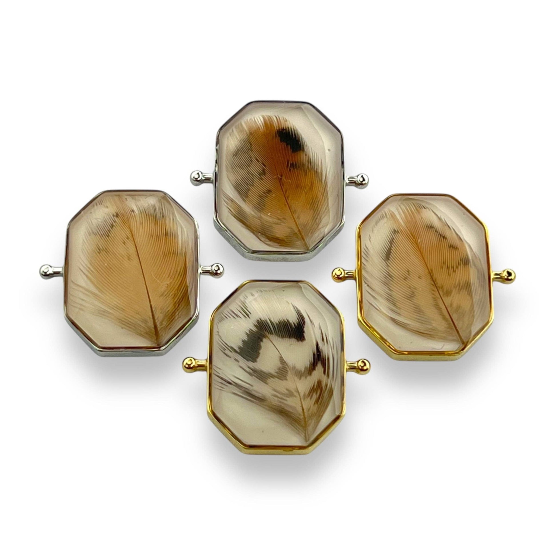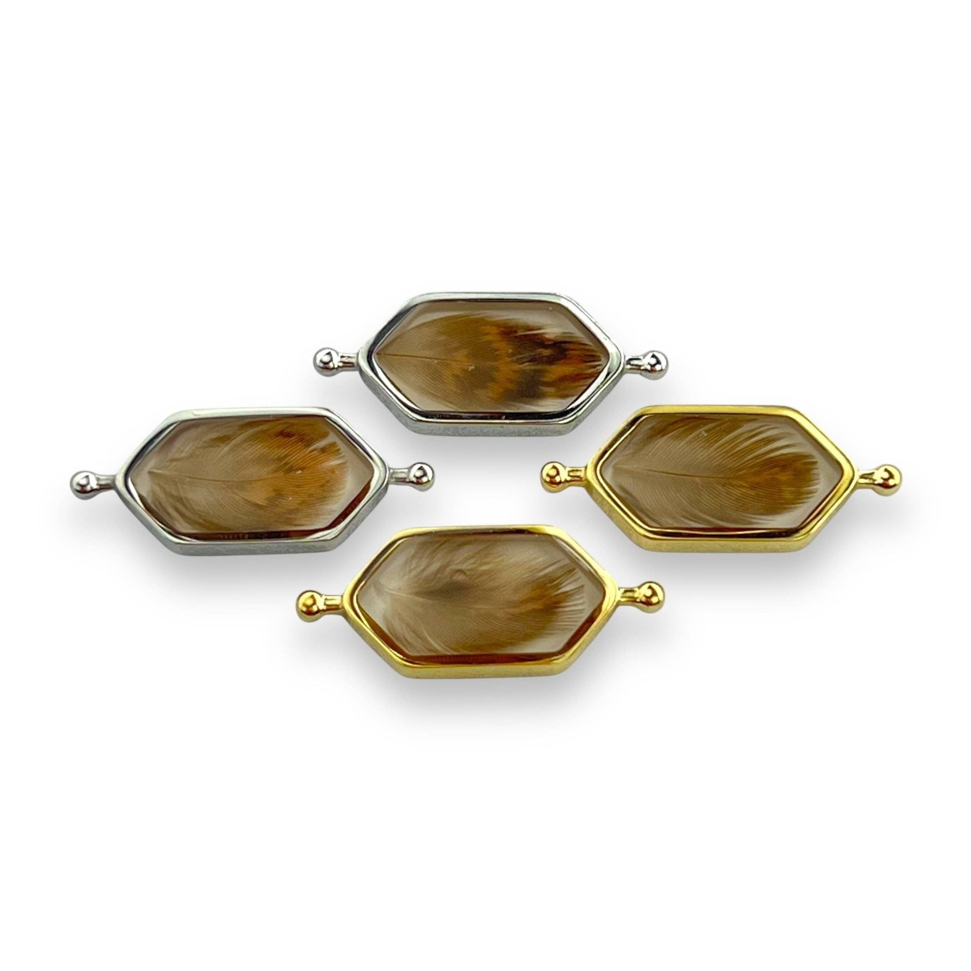 Our Victorian Collection Feather Vessels are a tribute to the natural beauty and rich symbolism of the era — each one showcasing a real pheasant feather encased in smooth resin. Designed by Chelsey of Complementary Shop, these limited-edition elements are available in three striking shapes: Oval, Octangle, and HexBar. Every feather is unique, making each piece a one-of-a-kind expression of nature’s quiet beauty. With soft visible textures, organic patterning, and bold silhouettes, these vessels blend the drama of vintage fashion with the grounding energy of the natural world. Choose the shape that speaks to your style — or collect them all while they last.